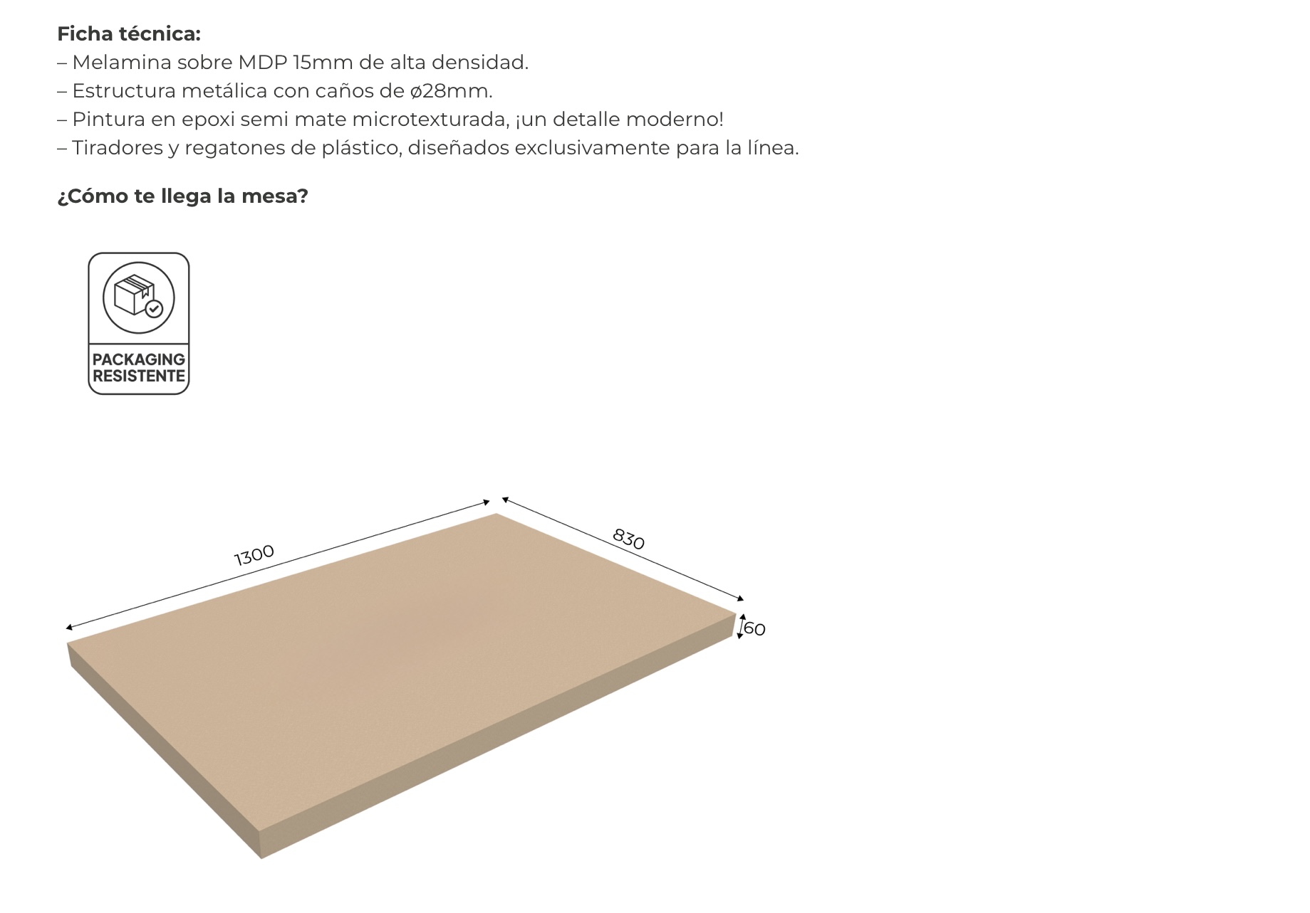 -ESTA MESA SERÁ DESPACHADA ENTRE 7 Y 10 DÍAS HABILES DESPUES DE TU COMPRA, DEBIDO A TIEMPOS DE FABRICACIÓN.